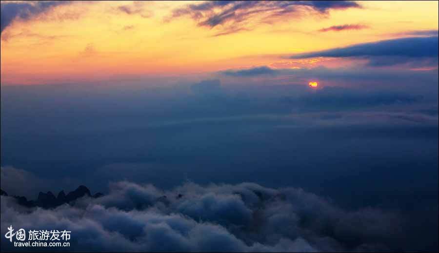 秋天的雨水相對較少,因此,云海出現的概率也少一些。但降雨過后,黃山則常常出現波瀾壯闊的云海景觀,云海飄逸靈動,峰石若隱若現,一幅幅布局詭異、構圖奇特、節奏變幻、色彩豐富、氣勢磅礴的立體畫呈現在面前。(葉永清)