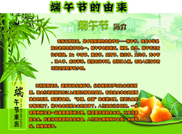 對(duì)于端午節(jié)的由來,各本其源,有屈原說、伍子胥說、曹娥說、三代夏至節(jié)說、惡月惡日驅(qū)避說、吳越民族圖騰祭說等。其中,在民間影響最大、范圍最廣的看法,認(rèn)為端午節(jié)是為了紀(jì)念投汨羅江而死的忠臣屈原。