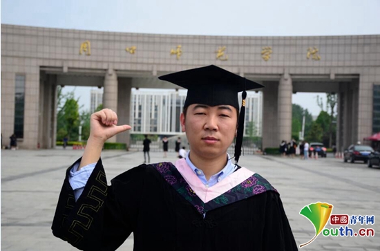 圖為周口師范學院畢業生劉凱在校門口留念。本人供圖