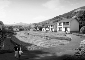 根據村莊歷史資源和民俗特色,皇碑村的發展模式確定為生態保護型模式+休閑旅游型模式。設計方案將村莊風貌整體劃分為“一帶五區”:一帶即小溪河景觀風貌帶,五區指高山森林風貌區、山林梯田風貌區、寫意村居風貌區、生態田園風貌區與集鎮街道風貌區。同時,還設計了騎行綠道、四季花海、客家小鎮、高山梯田、陳垂裕祠、十八羅漢松等項目與節點。