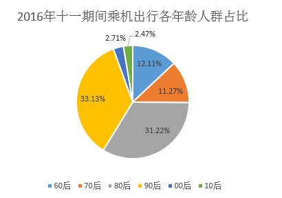 “80后”出行人數雖已不是第一,卻仍占到總人數的31.22%,依舊是乘機出游的主流人群,與90后共同占領了整個市場的半壁江山。