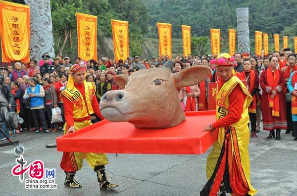 10月15日,為進(jìn)一步弘揚(yáng)華夏母親嫘祖的人文精神,全力構(gòu)建海內(nèi)外炎黃子孫共同的心靈家園,近五千中華兒女代表相聚在四川省綿陽(yáng)市鹽亭縣參加2016(丙申)年華夏母親嫘祖故里酬蠶節(jié)民間祭祖儀式,禮拜華夏母親嫘祖,祈福中華民族偉大復(fù)興。