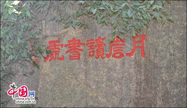 環顧四周,戴先生的《梅屋》景致,生龍活虎。四周粗略走個通頭,遺憾的是巨石周圍長滿植被,找不到可以爬上梅屋屋頂(刻有“釣月臺”的石塊)的路影,也就不能高空領略先人們凈空坐懷“釣月臺”上撫琴攬月,憂而不傷的情懷。