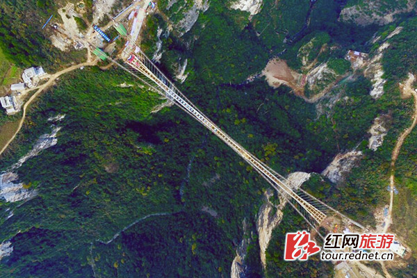 景區(qū)還透露,預(yù)計(jì)于2017年底,建于目前世界最高最長(zhǎng)玻璃橋上的蹦極臺(tái)將建成并與游客見(jiàn)面。據(jù)測(cè)算,玻璃橋面距離谷底相對(duì)高度約300米,屆時(shí)這或?qū)⒊蔀槭澜缟献罡叩谋臉O臺(tái)。