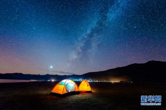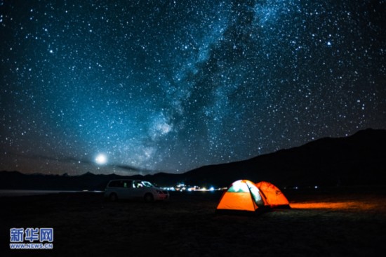 11月22日晚羊湖的星空。新華網(wǎng)達娃攝