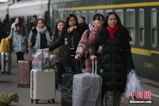 1月10日,大批旅客在南京火車站乘坐火車出行。春運臨近,大批外來務工人員和高校提前放假的學生為避開乘車高峰開始提前返鄉,火車站、汽車站等交通窗口客流先涌。據悉,今年的春運將從1月13號起到2月21號,共40天,全國鐵路預計發送旅客3.56億人次。 中新社記者 泱波 攝