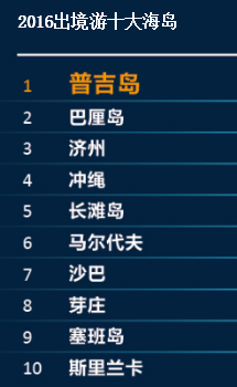 受國內(nèi)霧霾、空氣污染以及國人度假需求上升影響,空氣質(zhì)量和自然環(huán)境成為我國游客選擇目的地的重要因素。空氣清新,陽光燦爛的海島越來越受到中國游客的青睞。海島游占出境游總?cè)藬?shù)的30%。從攜程度假的訂單看,2016年十大人氣海島包括:普吉島、巴厘島、濟州島、沖繩、長灘島、馬爾代夫、沙巴、芽莊、塞班島、斯里蘭卡。