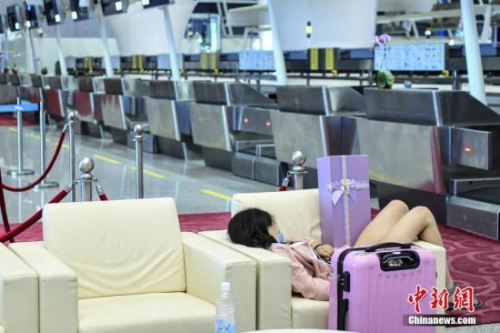 資料圖:8月1日,深圳機場,一名旅客因航班取消在出發大廳內休息。中新社記者 陳驥旻 攝