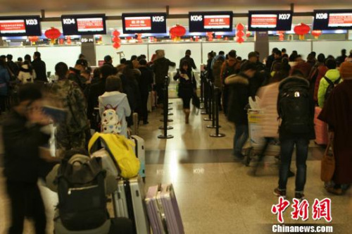 資料圖:1月25日,大批旅客在南京祿口國際機場辦理登機手續。中新社記者 泱波 攝