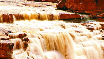 伍拾圓背面是黃河壺口氣勢宏偉的風(fēng)景。壺口瀑布是黃河流域的一大奇觀,它是中國第二大瀑布。壺口位于陜西省宜川縣與山西省吉縣交界處。黃河流至壺口時,寬約400米的河床突然收縮到四五十米,河水奔騰傾瀉而下,猶如從一巨型壺口傾倒出,所以起名“壺口”。由于河水的侵蝕作用,壺口瀑布每年都會向上游移動一小段距離,現(xiàn)在伍拾圓紙幣上這個場景,幾百年后會永遠(yuǎn)地消失在咆哮的黃河水中。