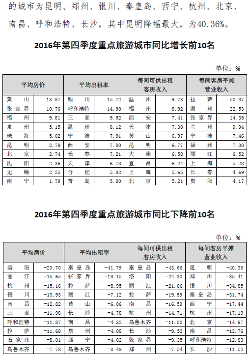 國家旅游局;統計公報;星級飯店;第四季度;2016年;全國