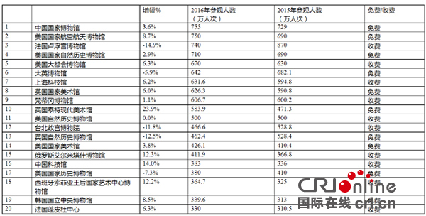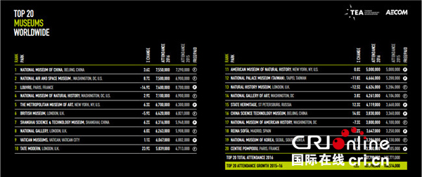 《TEA AECOM主題公園指數和博物館指數》公布2016年全球20大人氣博物館(中國國家博物館供圖)