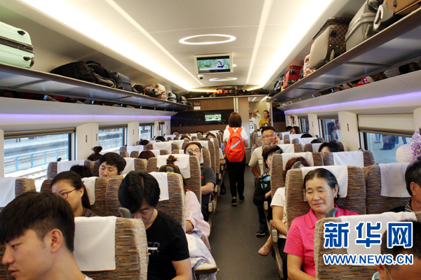 26日,G123次高速列車由北京南站發車。新華網 郭香玉 攝