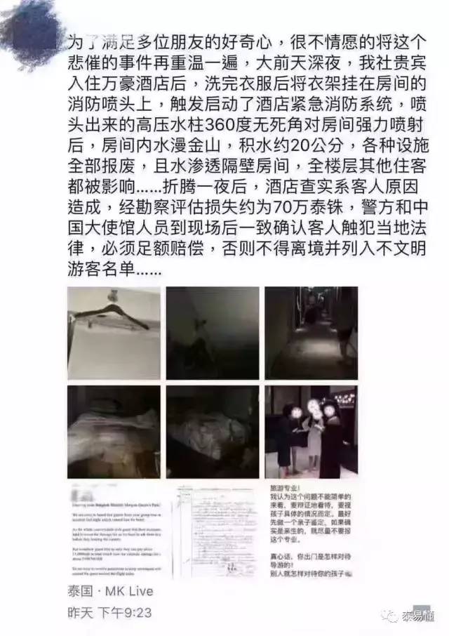 一家旅行社近日曝出一則驚人消息:“中國游客在泰國豪華酒店晾衣服,觸發(fā)消防噴頭遭酒店索賠14萬”。