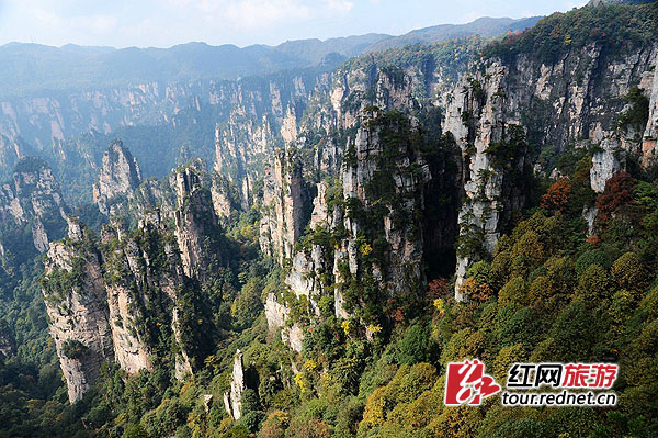 十月將盡,世界自然遺產地張家界武陵源風景名勝區天子山、袁家界、黃石寨一帶深秋風景異常迷人。世界自然遺產地張家界武陵源風景名勝區天子山、袁家界、黃石寨一帶深秋風景異常迷人,紅的、黃的、紫的、綠的樹葉把一座座山峰裝扮得五彩斑斕,恍若童話世界,令海內外游客陶醉忘返。