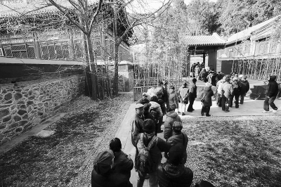 香山公園11月28日“香山寺試開放”的消息一經傳出,11月29日就有許多市民前往參觀。大家沒想到的是進入香山寺“后苑”的通道上排起了長隊。原來園方為安全起見,苑中只限50人入內,出一人才能再進一人。當天筆者排隊一個多小時才進去參觀,手腳幾乎都凍僵了。園方限流的主要原因是苑內的上行臺階通道狹窄,但據本人觀察:苑中活動面積很大,游客不是集中出入,而是三三兩兩地溜達,上下山坡臺階的游客基本不會扎堆兒。所以只限50人進入并不合理。而且來此參觀的游客大都是中老年人,長時間受凍不利于身體健康,所以希望園方能夠進行科學預測,在保證安全的前提下,盡量減少公眾的排隊時間。龐錚錚 文并攝