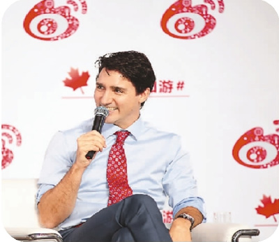 加拿大總理賈斯廷·特魯多向中國游客介紹加拿大。