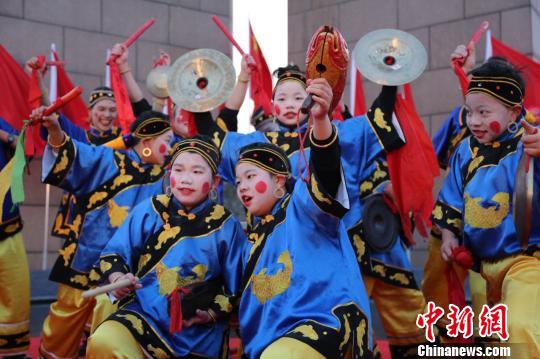 圖為現場溫嶺大奏鼓表演 梅柏林 攝