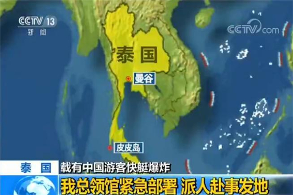 14日,泰國知名旅游景點皮皮島附近發(fā)生快艇發(fā)動機爆炸事件。事發(fā)快艇上當時共載有27名中國游客,以及數(shù)名泰國公民。經中國駐泰國宋卡總領事館確認,27名中國游客已被救上岸。中國游客都有不同程度受傷,其中5人受重傷,但都沒有生命危險。