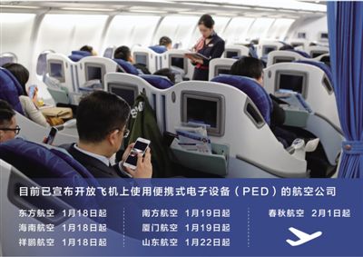 中國民航局日前發布的《機上便攜式電子設備(PED)使用評估指南》提到,“近年來,中國民用航空局為了滿足廣大旅客需求,根據中國國情,經過技術測試、規章修訂等一系列工作,認為開放機上PED使用的條件已基本成熟”。