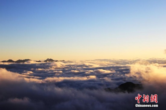 四川阿壩州達古冰山迎來雪后初晴,在4860米的冰川之巔,再現云海景觀。云海隨著風肆意翻滾,形狀各異,瞬息萬變,遠處的群山雪峰在云海中時隱時現,瞬間吸引游客的目光。鐘欣 攝