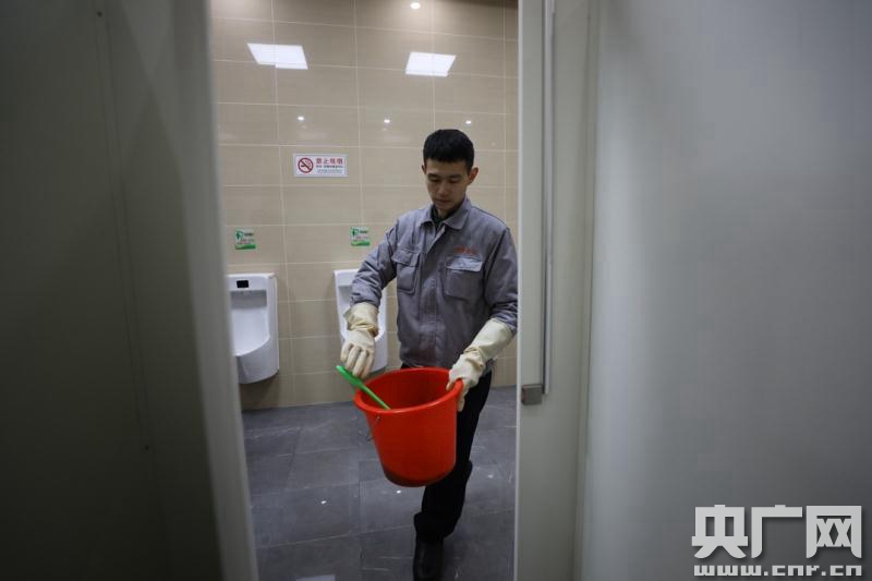 2017年7月,沈陽北站抽調部分客運員轉崗成為保潔員,負責車站候車室公共廁所的衛生保潔工作。27歲的客運員劉浩主動報名,成為保潔隊伍中的一員,成為候車大廳A14男衛生間守廁人。