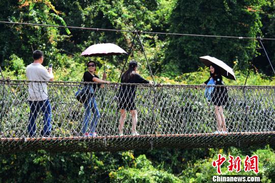 清明期間,游客在三亞亞龍灣熱帶天堂森林旅游區游玩。 黃慶優 攝