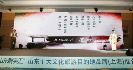 兩場推介會都以儒家文化為基調,好客山東品牌為統領,把動態推介、戲曲舞蹈、訂制視頻、互動游戲和設計大賽有機融為一體,聲光畫影,情景交融。特別訂制的《好客山東 精品旅游》視頻,邀請了山東省十大文化旅游目的地各品牌所在地的非遺傳承人、工匠藝人、博物館負責人、旅游企業管理者和優秀導游等出境發聲,展現山東發展精品旅游的優勢和決心。在動態推介環節特別推出了“小劇場”,由演員分別扮演東方圣地、仙境海岸和平安泰山等十個品牌的名人,引出相應的旅游資源,活靈活現、新穎生動的推介形式博得現場嘉賓的陣陣掌聲。