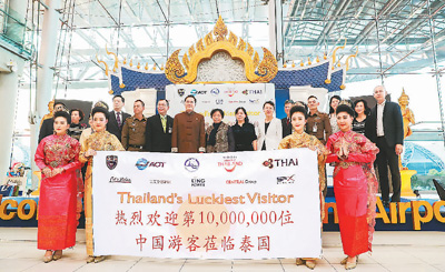 泰國旅游部門舉行儀式歡迎2018年到泰國的第1000萬名中國游客,慶賀中國游客人數創歷史新高。