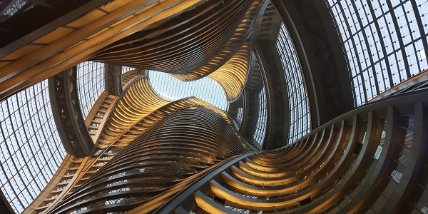 由于麗澤SOHO地塊下方的地鐵連通線將整個(gè)地塊一分為二,因此建筑師創(chuàng)造性地設(shè)計(jì)了高達(dá)200米的全球最高中庭解決了這一難題。每層樓的中央部分,都可以通過(guò)近200米高的通透中庭享受到自然光線。項(xiàng)目竣工后,這一200米高的異形中庭也將申請(qǐng)世界吉尼斯紀(jì)錄。