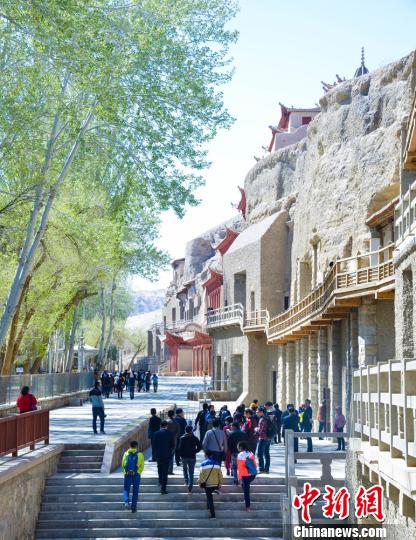 氣溫漸暖的4月中旬,甘肅古郡敦煌隨之開啟新一年的旅游熱潮。4月17日,一批批來自全國各地的游客聚集于世界文化遺產(chǎn)--莫高窟參觀游覽。據(jù)敦煌市旅游局統(tǒng)計,當日進入莫高窟觀光游覽的游客達到2000人以上。