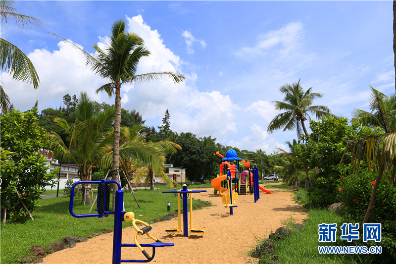 村里嶄新的健身器材和兒童游客設施。新華網 王雯君 攝