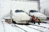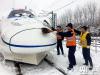 2018年1月4日,中國鐵路上海局集團公司合肥南動車運用所內,職工正在為即將上線運行的動車組進行掃雪除冰。(央廣網發 謝冰飛攝) -