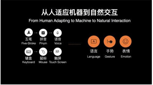“除了提升傳統行業效率,人工智能還會帶來人機交互的改變”。王小川解釋道,在人類輸入方式的變遷中,就可以看到從五筆到拼音到語音,從鍵盤到鼠標到觸屏,人類和機器交互的方式已經越來越“人性化”,通過語音識別、圖像識別等技術水平的提升,人類可以用自然的方式和機器進行交互,而不是被迫去適應機器,重新建立一套和機器對話的語言。