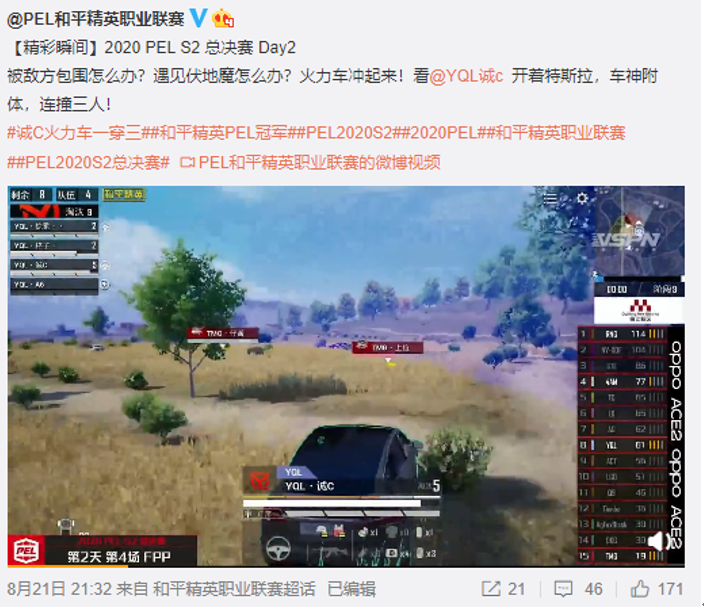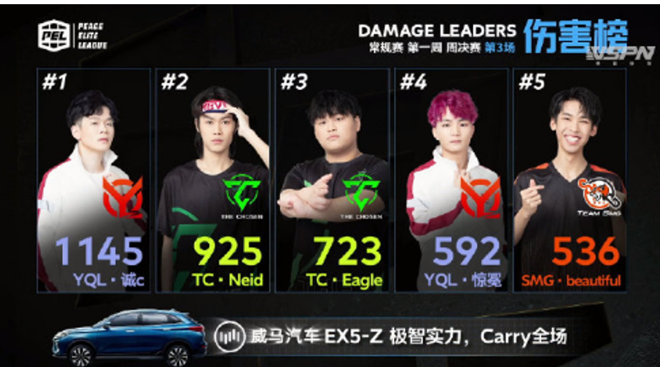 在首周的PEL 2020 S3 常規(guī)賽決賽中,YQL卻成功的浪起了一波又一波的高潮!簡(jiǎn)直驚呆了觀戰(zhàn)的小伙伴們!憑借著主力選手誠c的強(qiáng)勢(shì)操作,YQL順利在前兩局比賽中吃雞,一舉登頂排行榜首位置。而誠c更是連續(xù)三局獲得MVP,成為PEL首次完成該成就的選手!