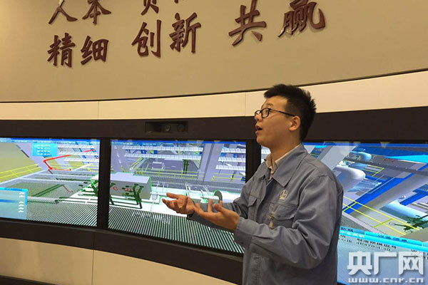 工作人員演示九江石化智能工廠三維數字化平臺。央廣網記者高藝寧_攝