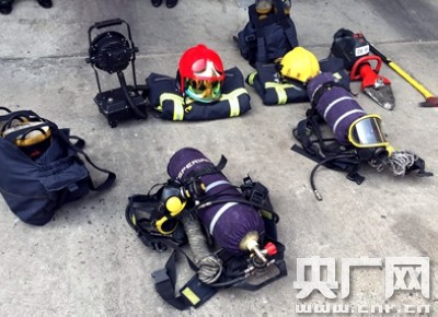 超過(guò)36公斤重的消防防護(hù)裝備 央廣網(wǎng)記者高藝寧攝