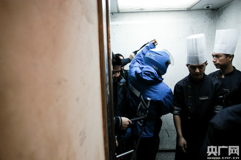 很多高檔寫字樓,需要?jiǎng)潌挝坏拈T卡才能坐客梯上樓。所以,像趙慶富這些送外賣、送快遞小哥一般都只能坐貨梯。每到送餐高峰期間,貨梯的速度很慢,一棟寫字樓又往往有很多層都有訂餐。“為了節(jié)省時(shí)間,我很多時(shí)候就直接爬樓梯,最高曾一口氣爬到過20多層”。