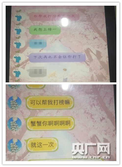 通過孫女士給記者發(fā)來聊天記錄截圖可以看出來,很多主播都在跟小蘇有意拉近關(guān)系,并在言語中直接或間接地向她提起給自己“打榜”或“想上榜”。還有的主播甚至對小蘇承諾“就這一次”、“下次再也不會讓你打了”。