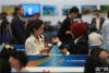 在“一帶一路”國際合作高峰論壇新聞中心內,兩名工作人員在預訂服務臺窗口交流工作。(央廣網記者 王永康 攝) -