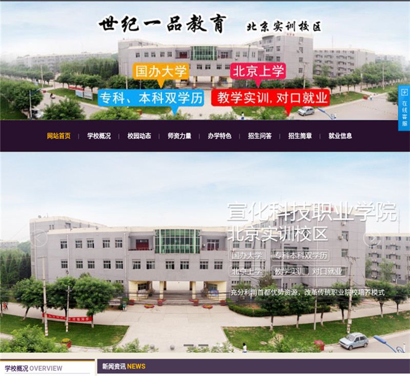 宣化科技職業學院北京實訓基地官網截圖,目前該網站已不存在