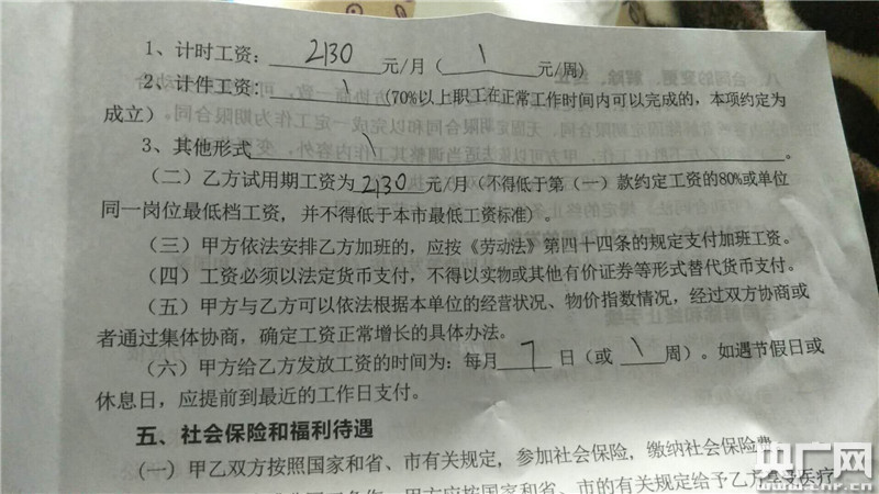 然而到了深圳趙程才發現,情況和在學校承諾的并不相同!皝碇皩W校說會管吃管住,但其實只管住不管吃,每個月300元飯補根本不夠用,住也沒個被子,都是現買的,花了不少錢。”趙程說。