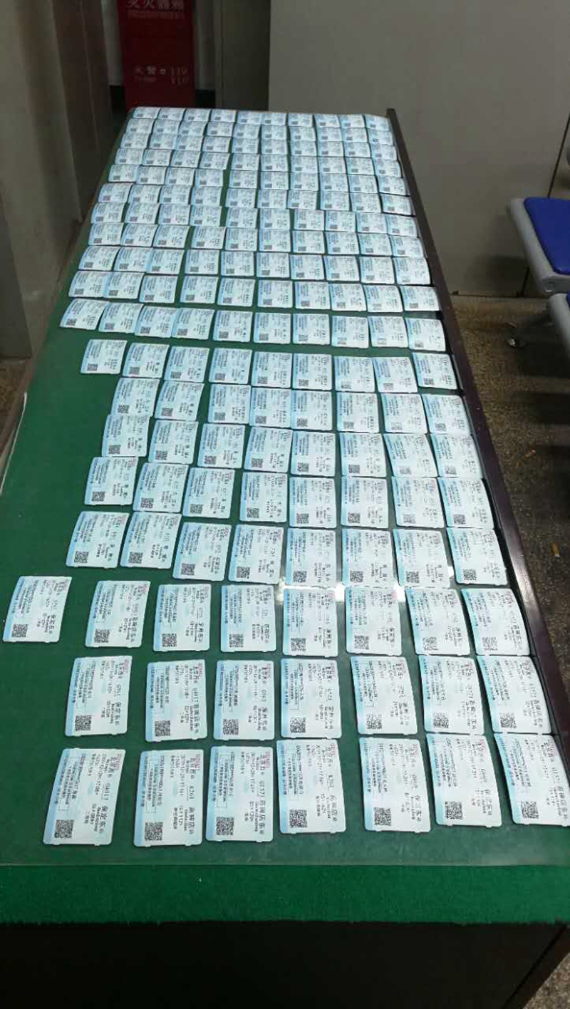 2017年12月29日11時許,北京公安處“獵鷹-2018”專項行動小分隊便衣民警在北京西站北廣場附近抓獲一名涉嫌倒賣火車票的男子,民警當場從其身上搜出火車票170余張,他人的二代身份證57張。