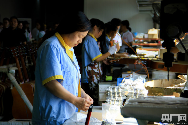 工作中的吉他產(chǎn)業(yè)園工人