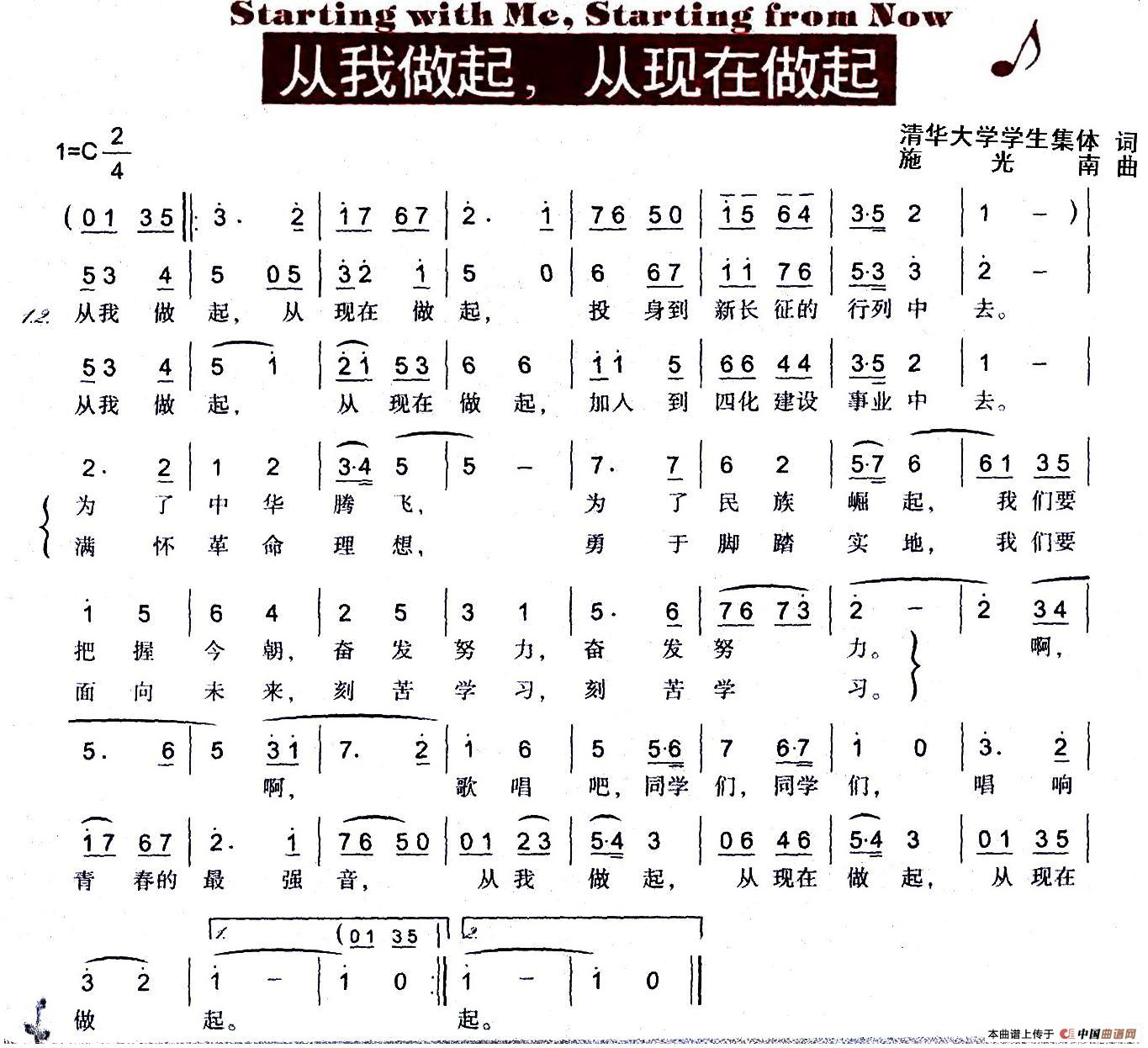 圖為《從我做起,從現(xiàn)在做起》的曲譜。(來源:中國曲譜網(wǎng))