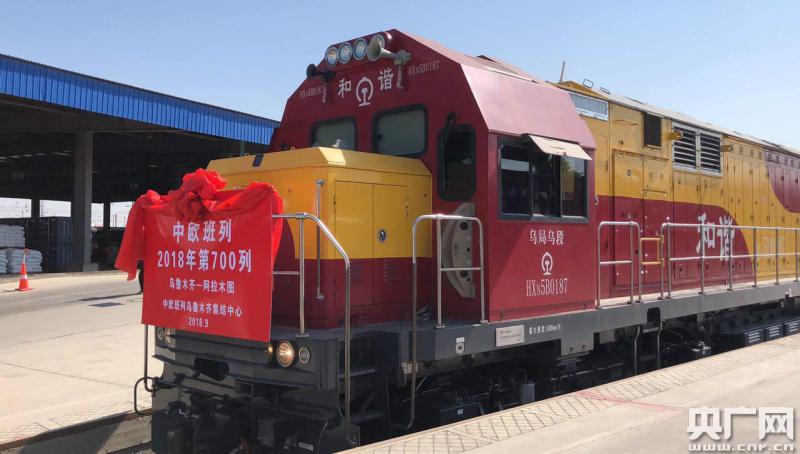 央廣網烏魯木齊9月11日消息(記者蔡夢雨)9月10日,中歐班列2018年第700次列車從新疆的中歐班列烏魯木齊集結中心開行,本次列車是從無錫到阿拉圖的“點對點”班列,裝運石油設備、汽車配件等工業零部件。