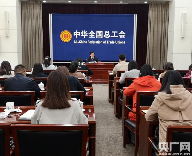 中國工會第十七次全國代表大會新聞發布會現場。 (央廣網記者 梁爽 攝)