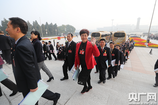 中國工會第十七次全國代表大會于今天(22日)上午在北京人民大會堂開幕,代表們紛紛入場。(央廣網記者王晶 攝)