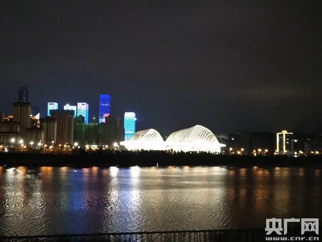 夜景中的廣西文化藝術中心。 (央廣網記者 王笑蕾 攝)
