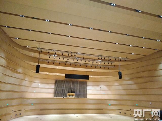 走進大劇院,可以看到它采用的是西方國家古典劇院的裝飾結構,舞臺為鏡框式的“品”字形,臺口設置有臺口聲柱,是國內首家安裝隱蔽式高功率可控聲柱揚聲器的劇院。觀眾廳采用雙曲面的造型,既美觀大方又能還原音樂的效果,也屬國內首創。